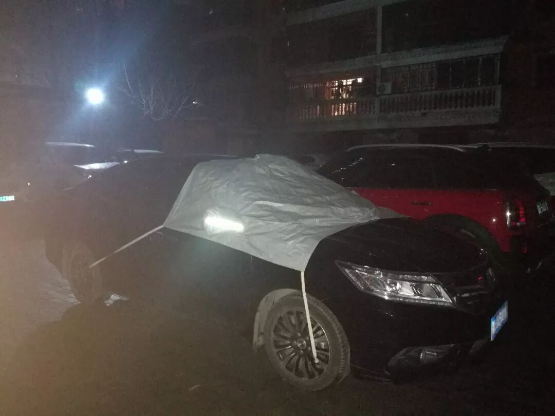 下雪前夜,大家停好车最好用东西覆盖一下挡风玻璃,以防早上结冰之后手忙脚乱。