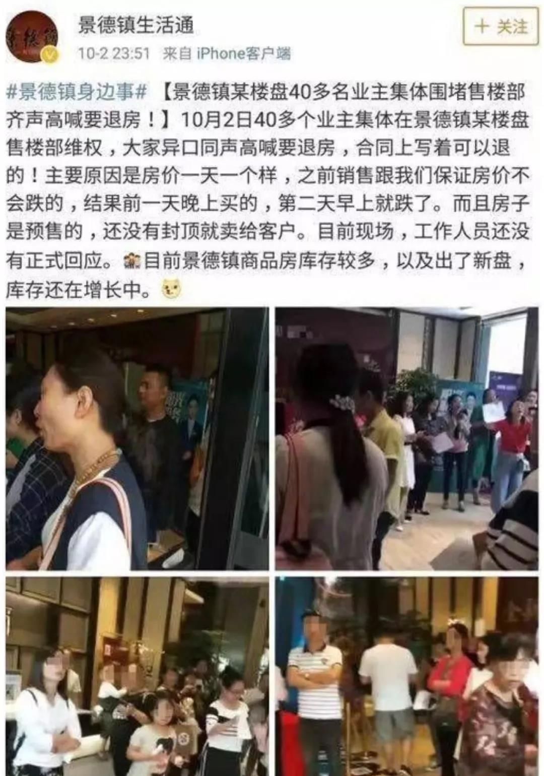 国庆假期期间,江西上饶碧桂园因为变相降价,1万/平米精装修,降到7000元/平米毛坯,引发业主维权,打砸售楼处。