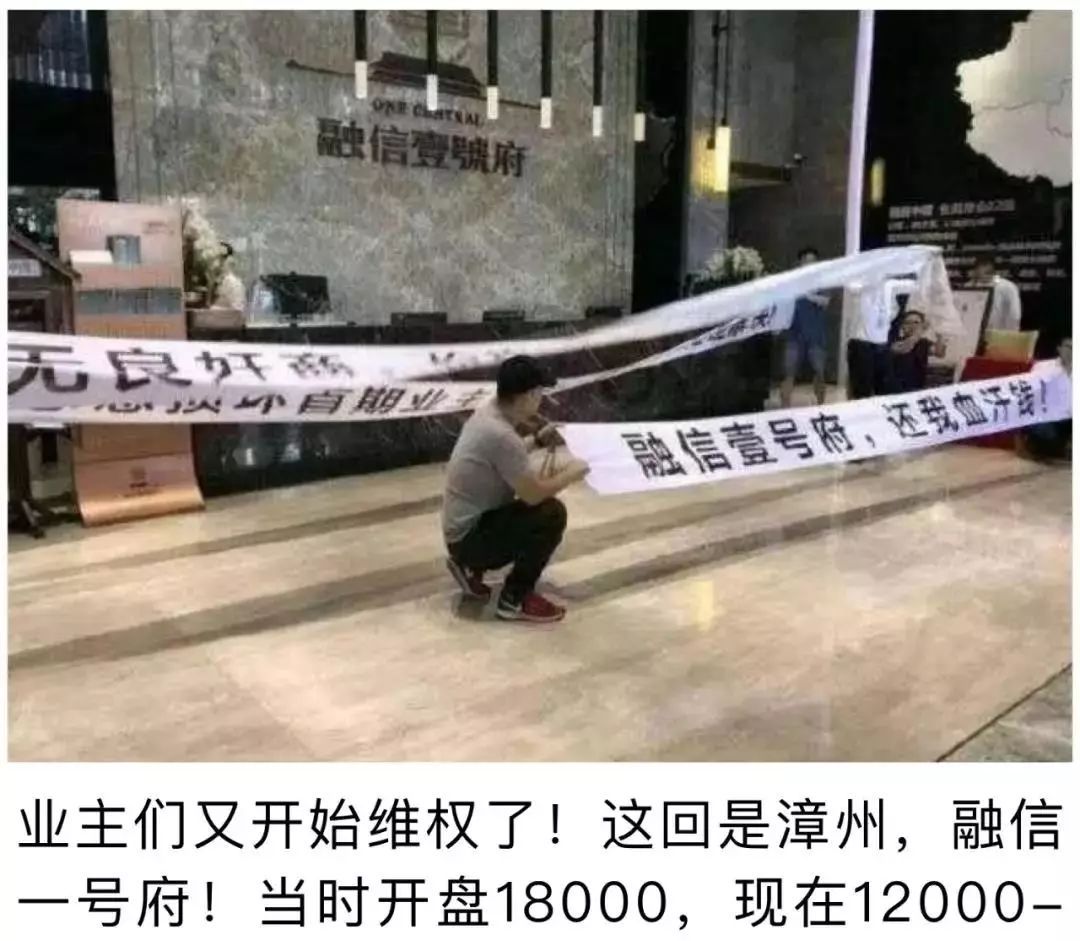 无独有偶,上海远郊浦东南郡碧桂园从3.5万降到2.6万,业主也是举牌维权。