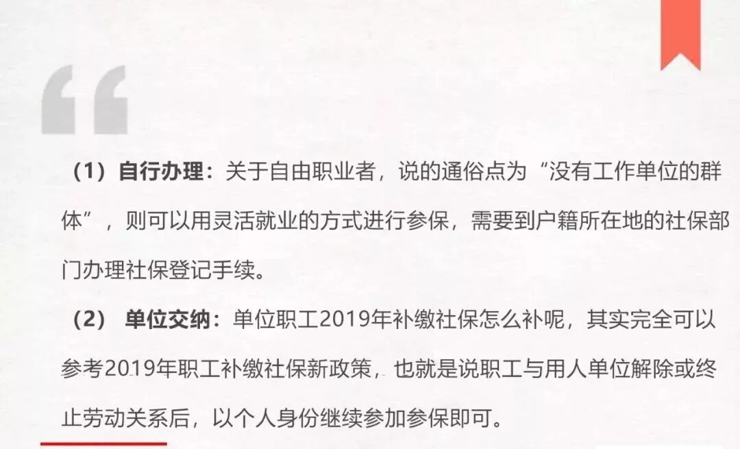 人社部公布最新文件: 社保将发生三大变化! 人力资源社会保障部2018年11月13日最新发布:《社保经办管理服务条例(征求意见稿)》。 大幅减少证明事项,解决难点痛点,制定“黑名单”制度,未来社保或将迎来一系列新的变化。 这也意味着国地税合并之后,社保由税局代收,人社统筹的新社保时代到来了! 1、这些证明将不用再提供! 根据征求意见稿,社会保险经办需要提供的证明事项将大幅减少。 2、社保转移接续将更简便! 3、这些行为将列入“黑名单”! 另外一大变化是,社保“黑名单”将会建立。 征求意见稿提出,国务院人力资源社会保障行政部门应当制定社会保险领域严重失信“黑名单”制度。 纳入“黑名单”,将受到跨地区、跨部门、跨领域失信联合惩戒。 新社保来了, 明年可能只有三种人可以一次性补缴! 想退休养老按月领取养老金是要满足以下两个条件的: 而很多人在离职换工作、换城市生活时导致社保断缴,缴纳年限不足,社保断缴超过一定的时间期限,进行补缴是需要缴纳滞纳金和利息的。按照现行规定: 当然,在实际执行中,滞纳金一般都针对参保单位未按时缴费来收取的,个体参保的一般没有征收滞纳金,但是,如果个人参保人跨年度欠费,那就必须补缴滞纳金。 二、一次性补缴难度增加,明年起,或将只有这三类人能一次性补缴 很多人退休前考虑一次性补缴,但显然国家新出的社保政策增加了一次性补缴的难度: 2019年1月1日以后达到60周岁,且未参保缴费的居民,不再发放老年人生活补助; 年满45岁周岁不满60周,岁且未参保缴费的居民,不再允许一次性趸缴15年的养老保险费,即意味着在45岁之前,必须有社保缴纳记录,否则是不允许一次性补缴的。 值得一提的是,这3类人在社保新规下依然可以一次补缴社保: (1)本地户籍,并在1961年至1982年期间下乡的知青; (2)本地户籍,曾经参加过职工养老保险的大龄人员; (3)本地城镇户籍,曾经与国有企业或县级、镇级集体企业建立劳动关系,并已在2010年12月31日前达到退休年龄。 不过,从2019年1月1日开始,社保费将由税务部门征收,这意味着以后企业会按职工的实际工资标准缴纳社保,以提高职工的社会保障水平,同时也意味着社保补缴将越来越严格。所以,近期很多人都想抓住补缴社保的机会,导致多地社保局人满为患。 三、社保补交方式 其实针对不同的交费人群,补交社保的方式是不大相同的,主要有两类人:有工作单位的人和灵活就业的人,我们来逐一攻破: 一次性补缴社保是否划算,其实主要取决于参保人的生命长度,简单来说就是,活得越久,领取的养老金就越多,缴纳社保就越划算。 说到这儿,大家或许会有疑问:一次性补缴社保政策即将取消,那年龄超过45岁没缴社保,或者已经缴了几年社保,但到60岁退休时没有缴满15年的人,该怎么办呢? 关于这个问题,国家也给出了解决方案,虽然即将取消社保一次性缴费,但并不代表过了60岁就不能继续缴费。 如果到60岁时没有缴满15年社保,一般有两种处理方法: 第一,退出养老保险,提取个人养老账户余额; 第二,继续缴纳,缴够15年再开始领取养老保险。 至于采用哪个方法,大家可以根据自身情况来确定。