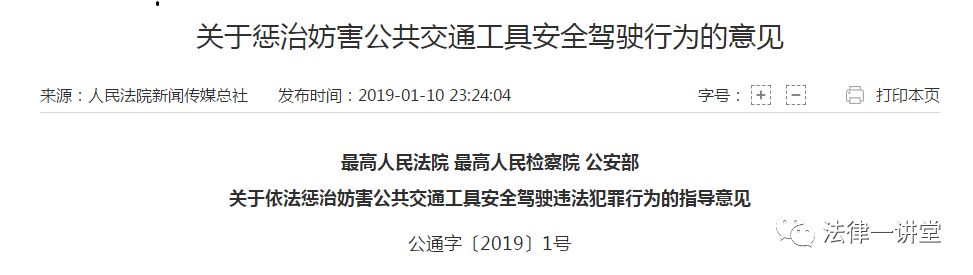 2019年1月8日,最高人民法院、最高人民检察院、公安部联合出台了《关于依法惩治妨害公共交通工具安全驾驶违法犯罪行为的指导意见》,明确此类行为以“以危险方法危害公共安全罪”定性,发生严重后果的最高可判死刑。即便没有发生严重后果,一般也不得适用缓刑,并规定7种从重处罚的情形,严厉打击此类危害行为。