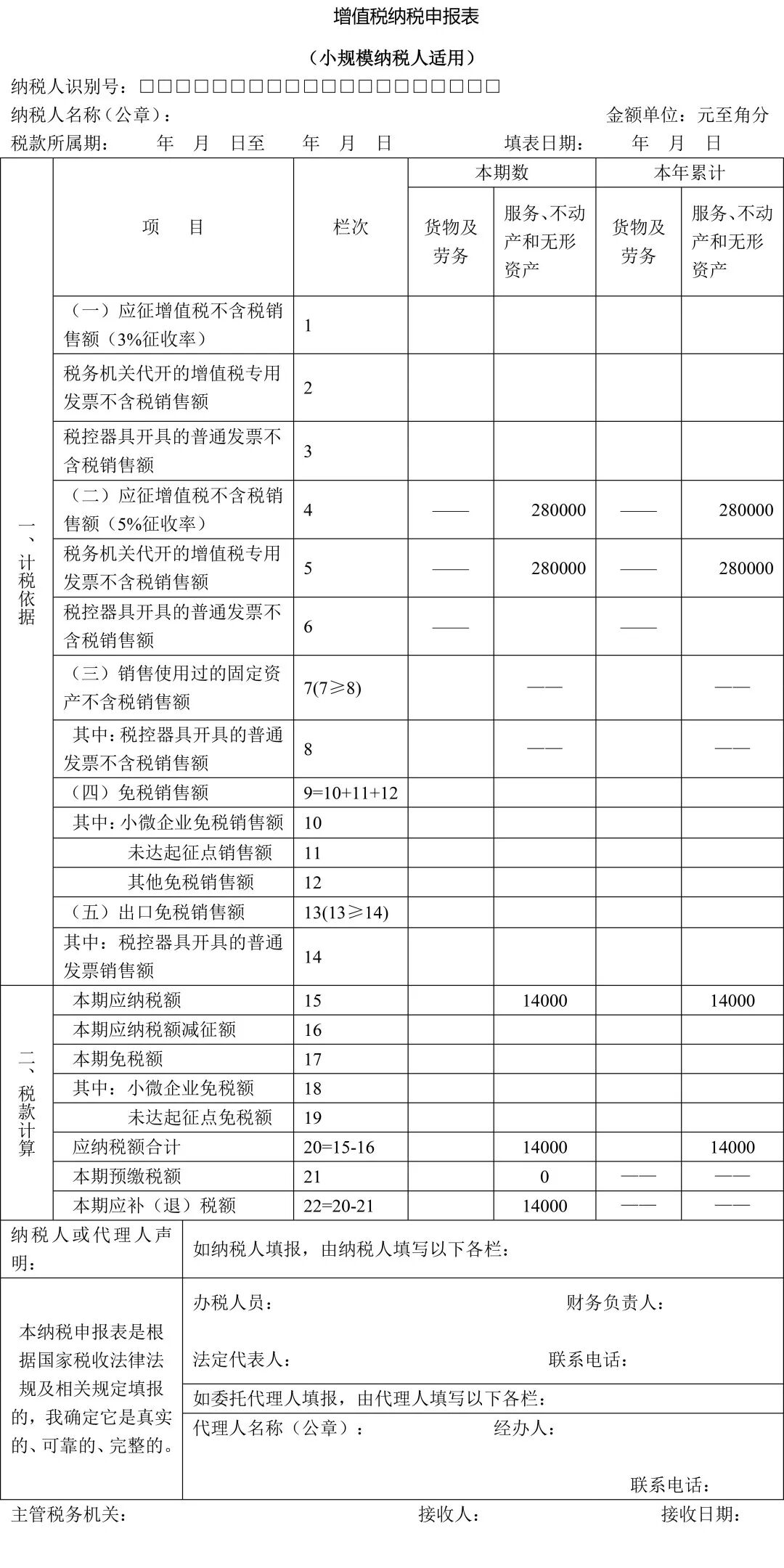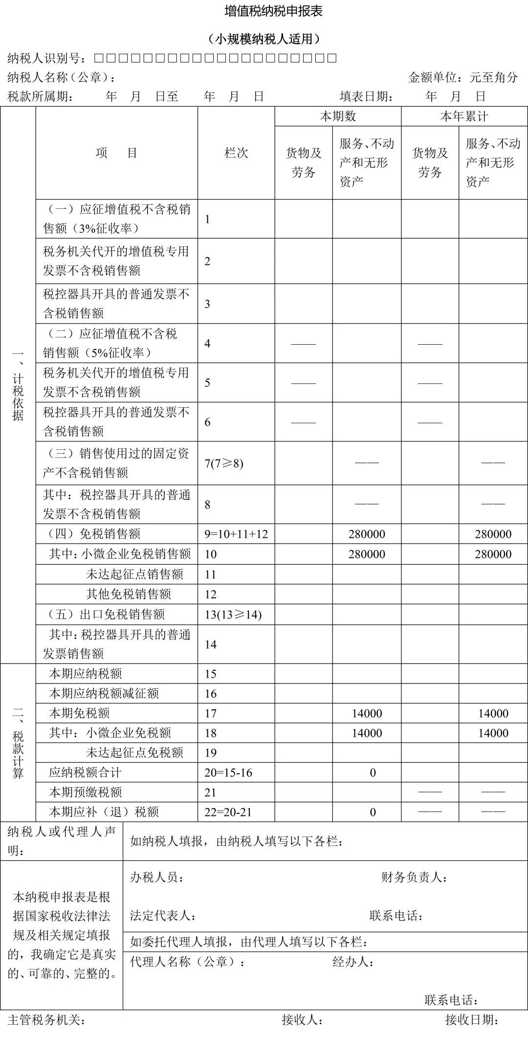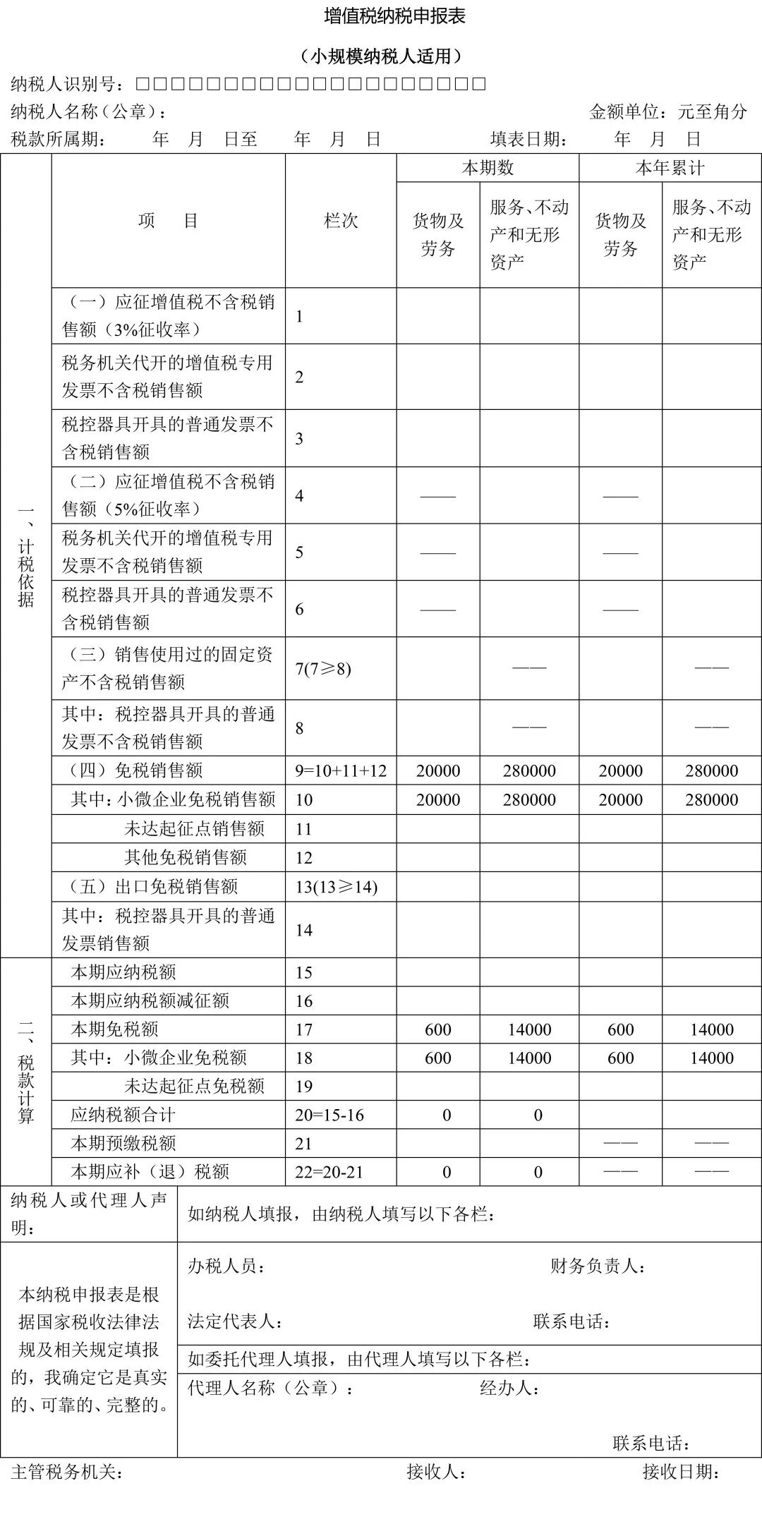 四个案例, 让你迅速定位找到自己所需~ 案例1:既有销售货物,又有提供应税服务 案例2:全部开具增值税普通发票 案例3:全部开具增值税专用发票 案例4:既有增值税普通发票,又有增值税专用发票 案例1:既有销售货物,又有提供应税服务 某公司是小规模纳税人,按季申报,2019年第一季度销售服饰取得不含税销售收入2万元,出租不动产不含税销售收入28万元,均开具增值税普通发票。本季度无发生其他增值税应税行为。 案例分析:季度销售额合计为28+2=30万元,未超过30万元免税标准,因此,本季度可享受小规模纳税人免税政策。 申报表填报: 1、“货物及劳务”列第9栏、第10栏的填写2万,第17栏、第18栏填写0.06万(=2万×3%) 2、“服务、不动产和无形资产”列第9栏、第10栏的填写28万,第17栏、第18栏填写1.4万(=28万×5%)。 案例2:全部开具增值税普通发票 某公司是小规模纳税人,按季申报,第一季度出租不动产取得不含税销售收入共计28万元,全额开具增值税普通发票。本季度无发生其他增值税应税行为。 案例分析:季度销售额合计为28万元,未超过30万元免税标准,且全额开具增值税普通发票,本季度可享受小规模纳税人免税政策。 申报表填报: 将开具普通发票销售额28万元销售收入填列于主表“服务、不动产和无形资产”列第9栏、第10栏。同时,将对应的免税额1.4万(=28万×5%)填写于主表“服务、不动产和无形资产”列第17栏、第18栏。 案例3:全部开具增值税专用发票 某公司是小规模纳税人,按季申报,第一季度出租不动产取得不含税销售额共计28万元,全额自开增值税专用发票。本季度无发生其他增值税应税行为。 案例分析:季度销售额合计为28万元,虽未超过30万元免税标准,但开具专用发票不能享受免税优惠,应按规定全额缴纳增值税。 申报表填报: 1、主表“服务、不动产和无形资产”列第4栏、第5栏填写28万。 2、主表“服务、不动产和无形资产”列第15栏、第20栏填写1.4万(=28万×5%) 案例4:既有增值税普通发票,又有增值税专用发票 某公司是小规模纳税人,按季申报,第一季度出租不动产取得不含税销售额28万元,其中自开增值税专用发票5万元,开具增值税普通发票23万元。本季度无发生其他增值税应税行为。 案例分析:季度销售额合计为28万元,未超过30万元免税标准,本季度可享受小规模纳税人免税政策,但其中自开专用发票部分应按规定缴纳增值税。 申报表填报: 1、开具增值税专用发票部分,填列主表 “服务、不动产和无形资产”列第4栏、第5栏填写5万元,第15栏、第20栏填写0.25万(=5万×5%)。 2、开具增值税普通发票部分,填列主表“服务、不动产和无形资产”列第9栏、第10栏填写23万;第17栏、第18栏填写1.15万(=23万×5%) 财务成本管理公式来源:厦门税务、第三税务分局、象屿保税区税务
