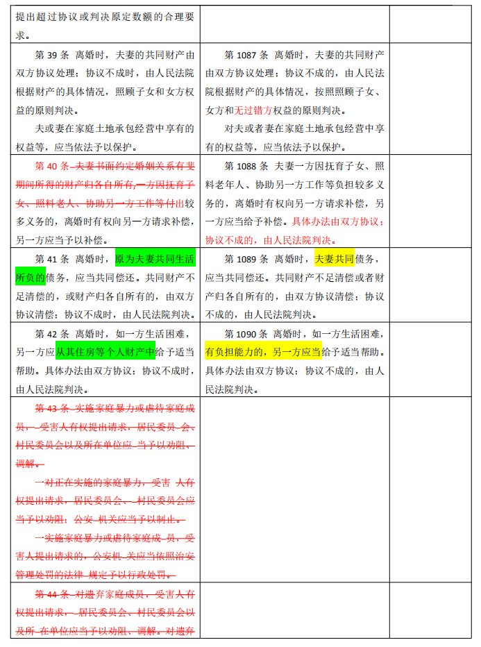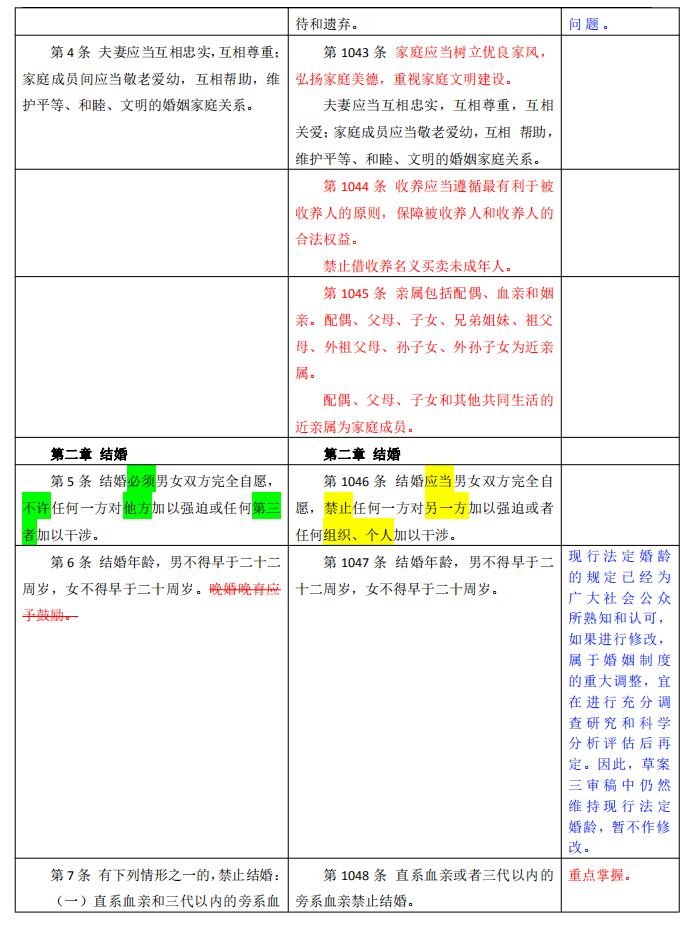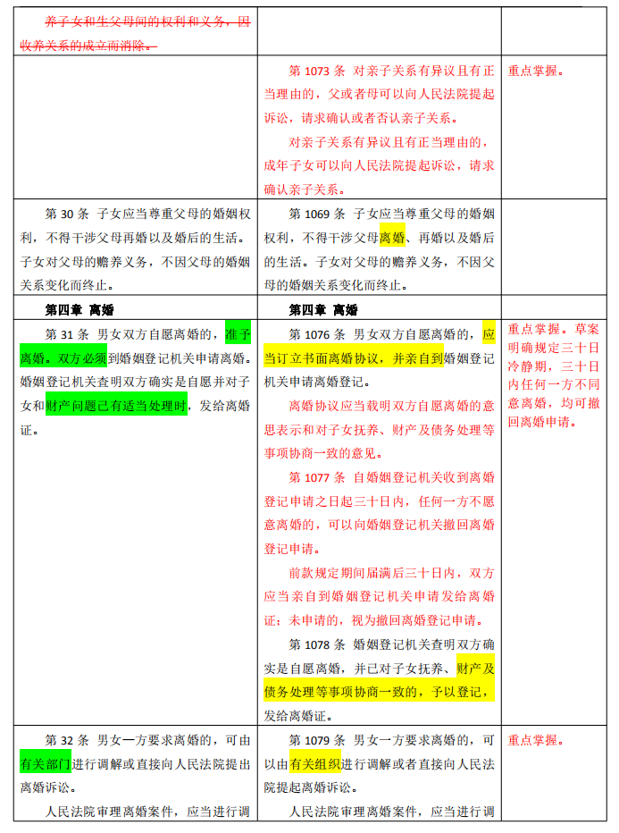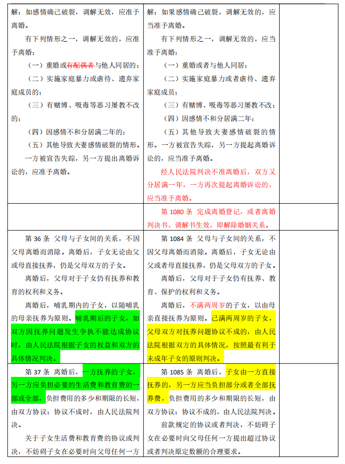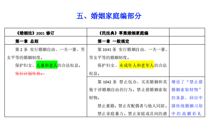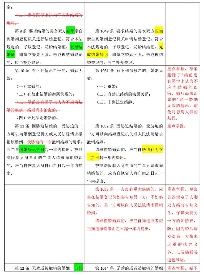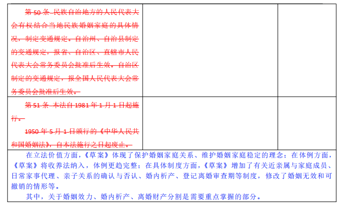婚姻法与民法典草案(婚姻家庭编)对比图