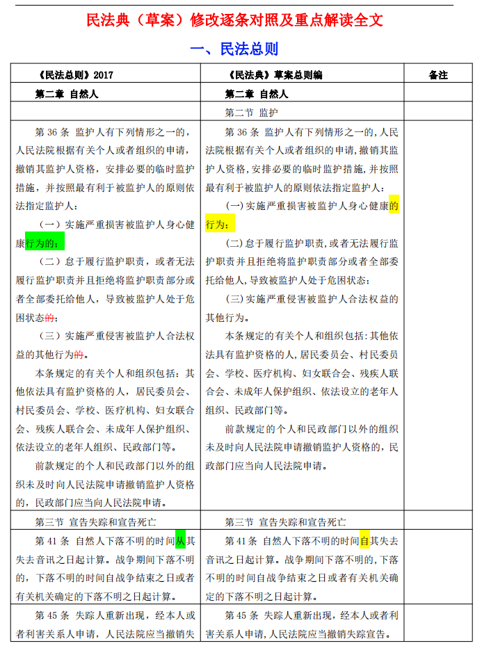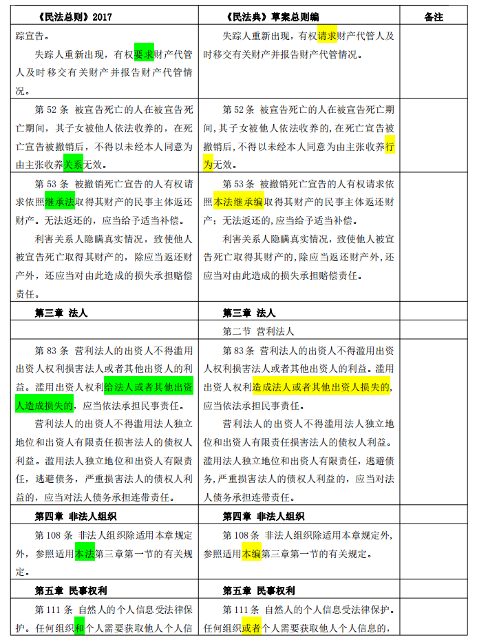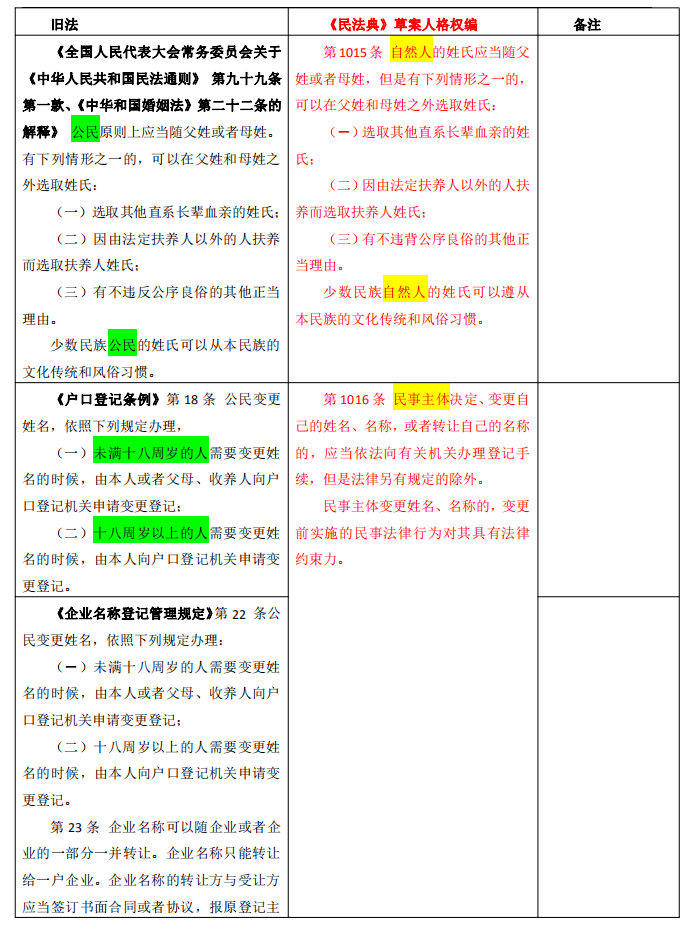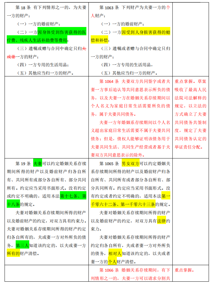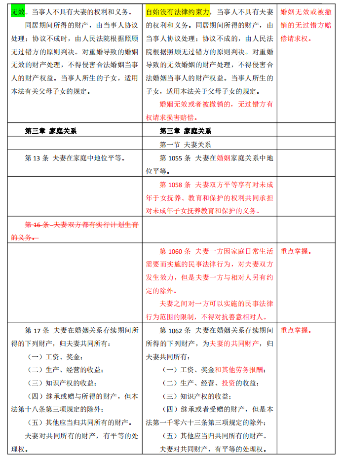 婚姻法与民法典草案(婚姻家庭编)对比图