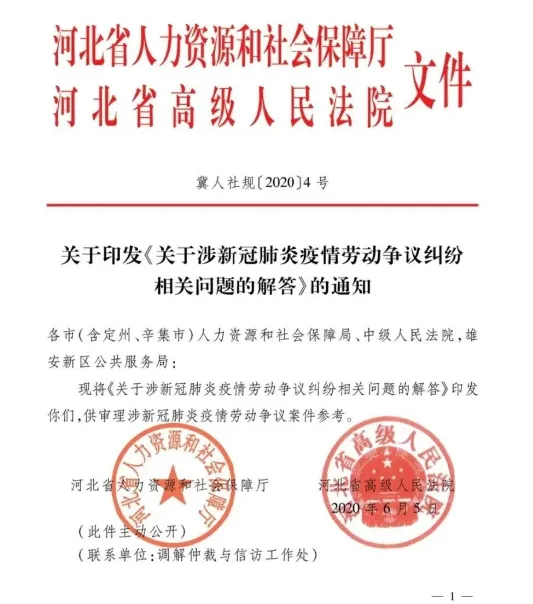 最新:人社厅、高院联合发布涉新冠疫情劳动纠纷相关问题解答(2020.6.5)